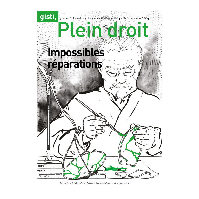 Dans ce dossier commun, Plein droit et Délibérée – une revue animée par le Syndicat de la magistrature – explorent différentes facettes de ces « impossibles réparations », tant collectives qu’individuelles, ainsi que les dispositifs imaginés pour tenter de surmonter les limites du droit et inventer d’autres formes de justice réparatrice, symboliques ou extra-juridiques. Que peut-on exiger de la justice pour réparer les injustices passées et présentes ? S’agit-il d’indemniser un préjudice, de le compenser ou de restaurer, sinon de reconstituer un corps social inclusif et jusqu’alors fracturé par des inégalités structurelles ?